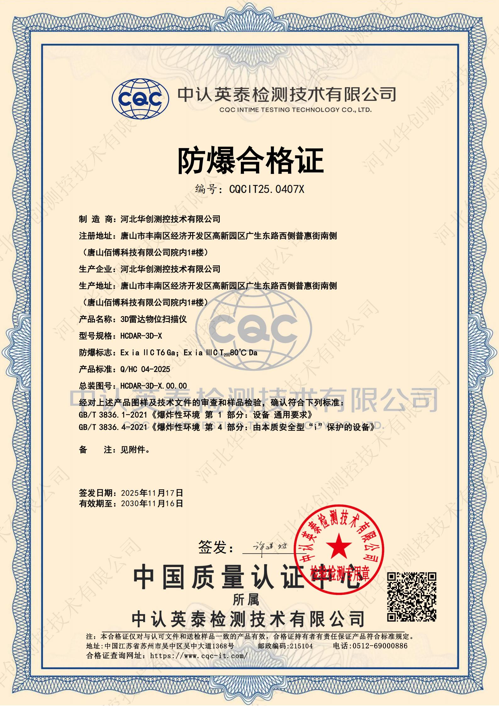 HCDAR-5、6、8Conformity certificate of Explosion-proof